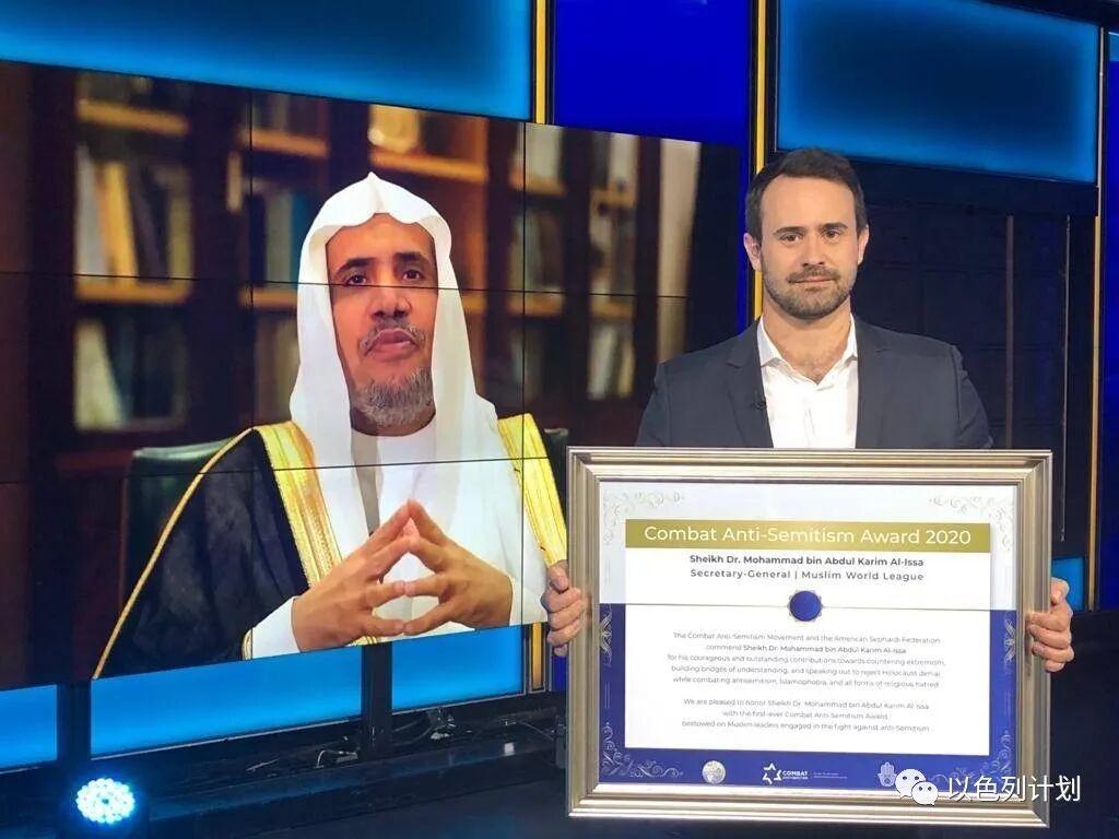 近期,穆斯林世界联盟秘书长穆罕默德·艾萨博士(Dr. Mohammed Al-Issa),因其在反对反犹主义做出的贡献,获得由反对反犹主义运动授予的奖项。