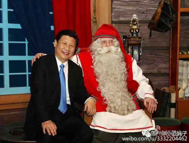 譬如,彭丽媛激情演唱过“哈利路亚”,而习大大不仅不抵制圣诞节,相反在“这个圣诞节”,他还笑容满面地与圣诞老人欣然合影,与全民同乐,并晒上喜气洋洋的照片一组,惹得网友不明觉厉之余大加赞叹:穿圣诞服的大大比吃包子的大大更萌、更可爱。